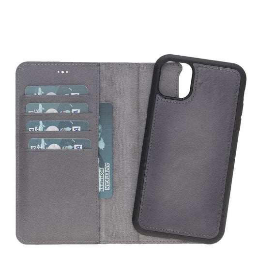 Apple iPhone 11 Uyumlu Deri Cüzdanlı Kılıf RST9 Gri