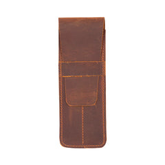 Bu iki kalem kapasiteli deri kılıf, favori yazı gereçlerinizi şık ve güvenli bir şekilde taşımanızı sağlar. Birinci sınıf hakiki deriden üretilmiştir ve zamanla oluşan doğal patina sayesinde tamamen size özel, benzersiz bir görünüme kavuşur.