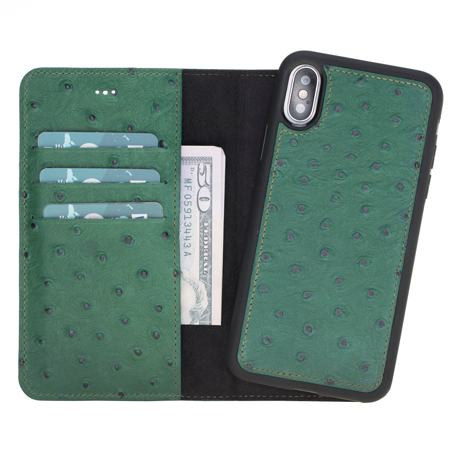 Apple iPhone X-XS Compatible Leather Wallet Case DE6 Green