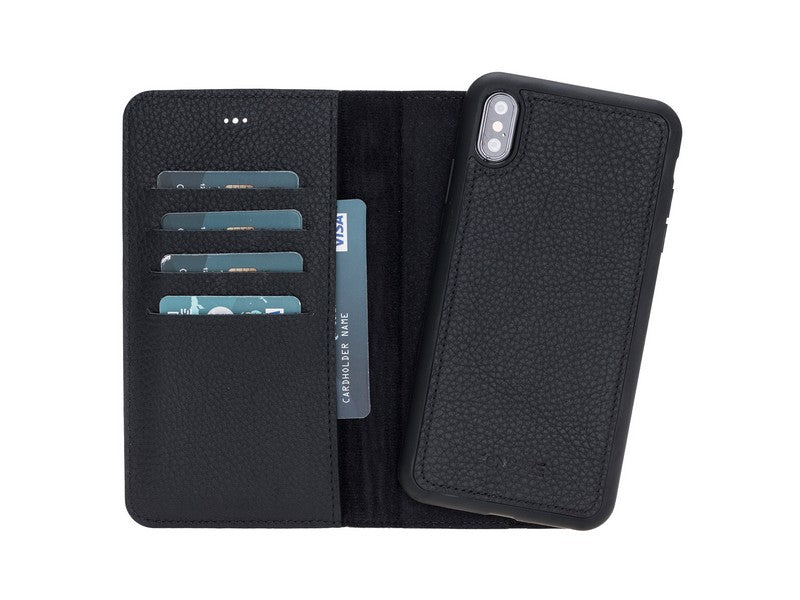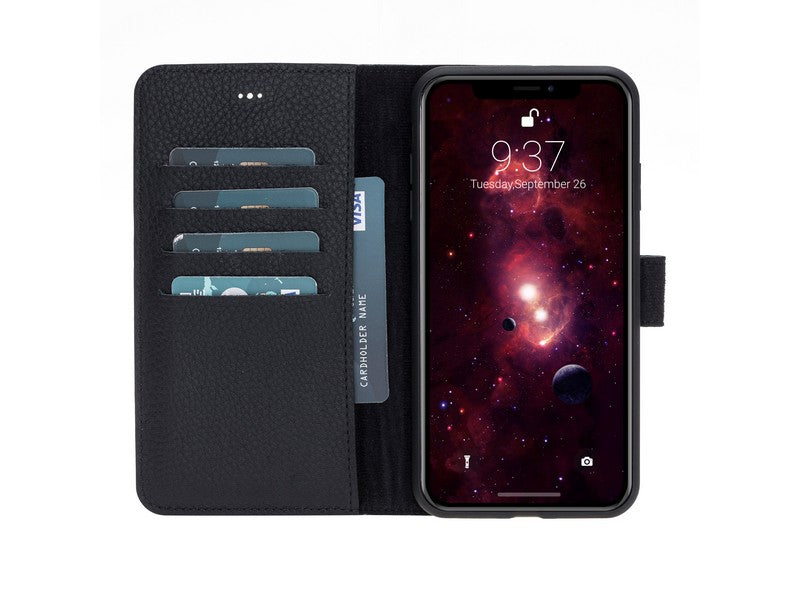 Apple iPhone XS Max Compatible Leather Wallet Case FL01 Black