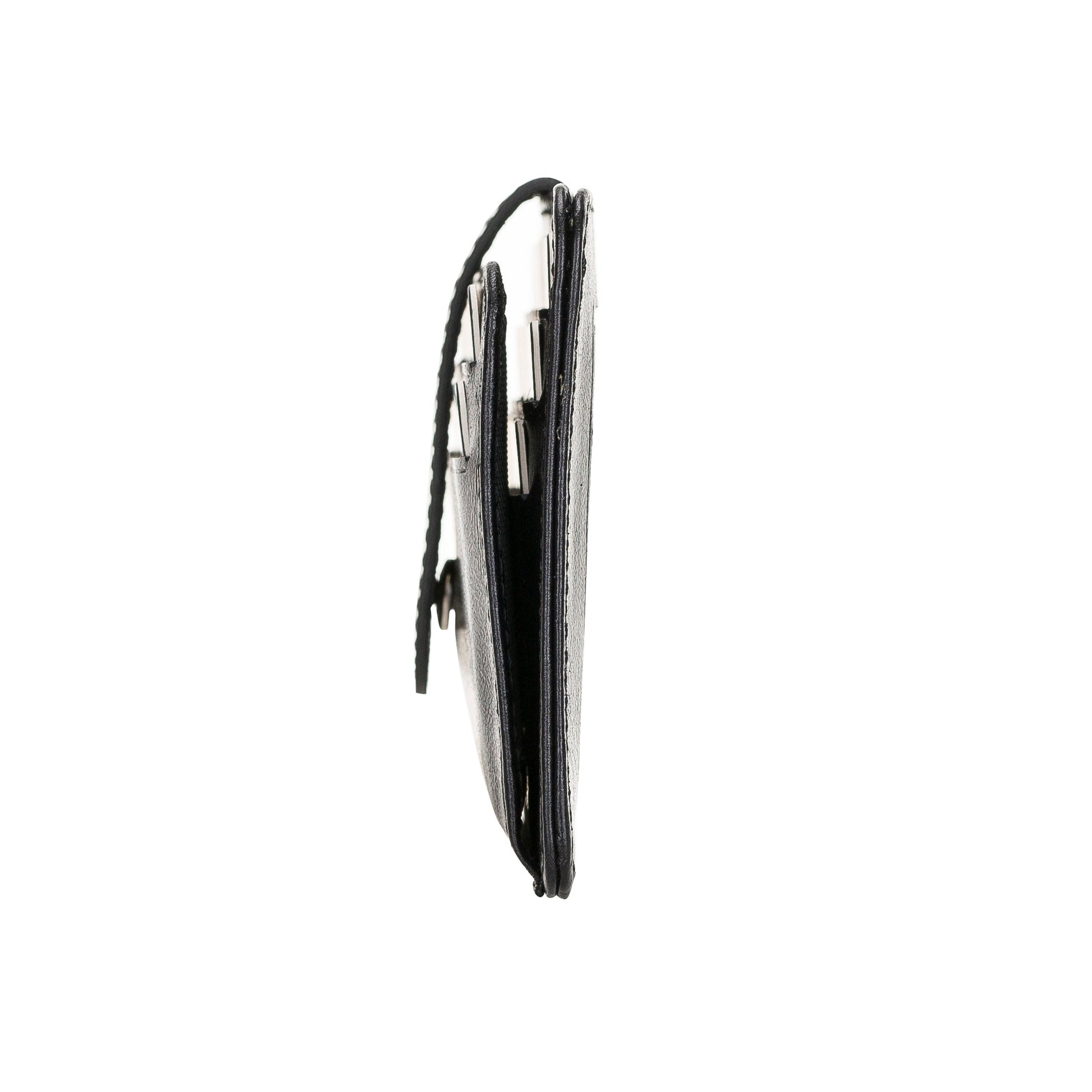 Leather Card Holder, 6 Card Compartments, 2 Windows, Black