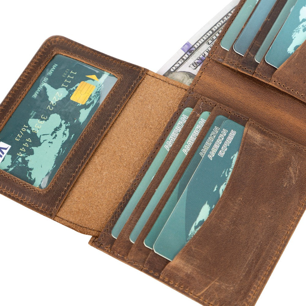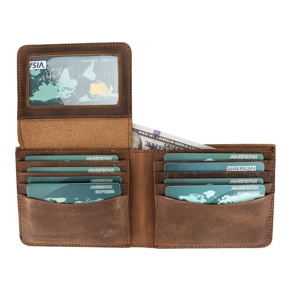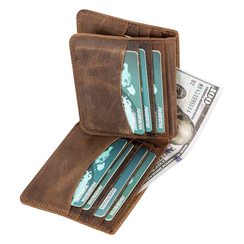 Paul Leather Wallet and Card Holder, 12 Card Compartments, Antique Brown