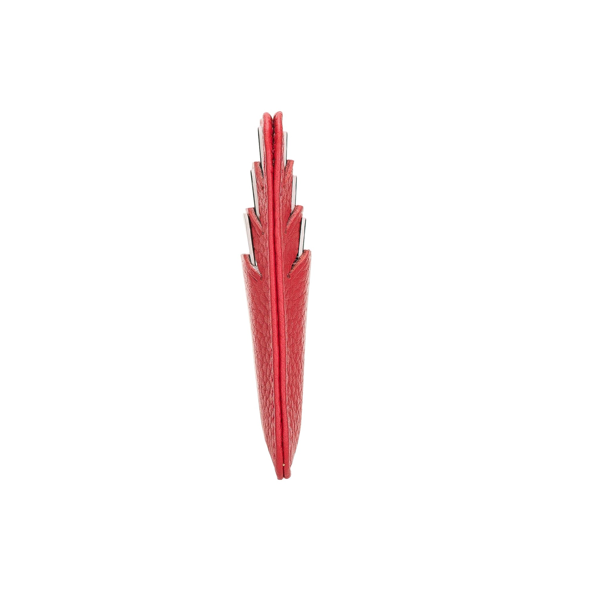 Leather Card Holder, Paper Money Section, 6 Card Compartments, Pomegranate Flower