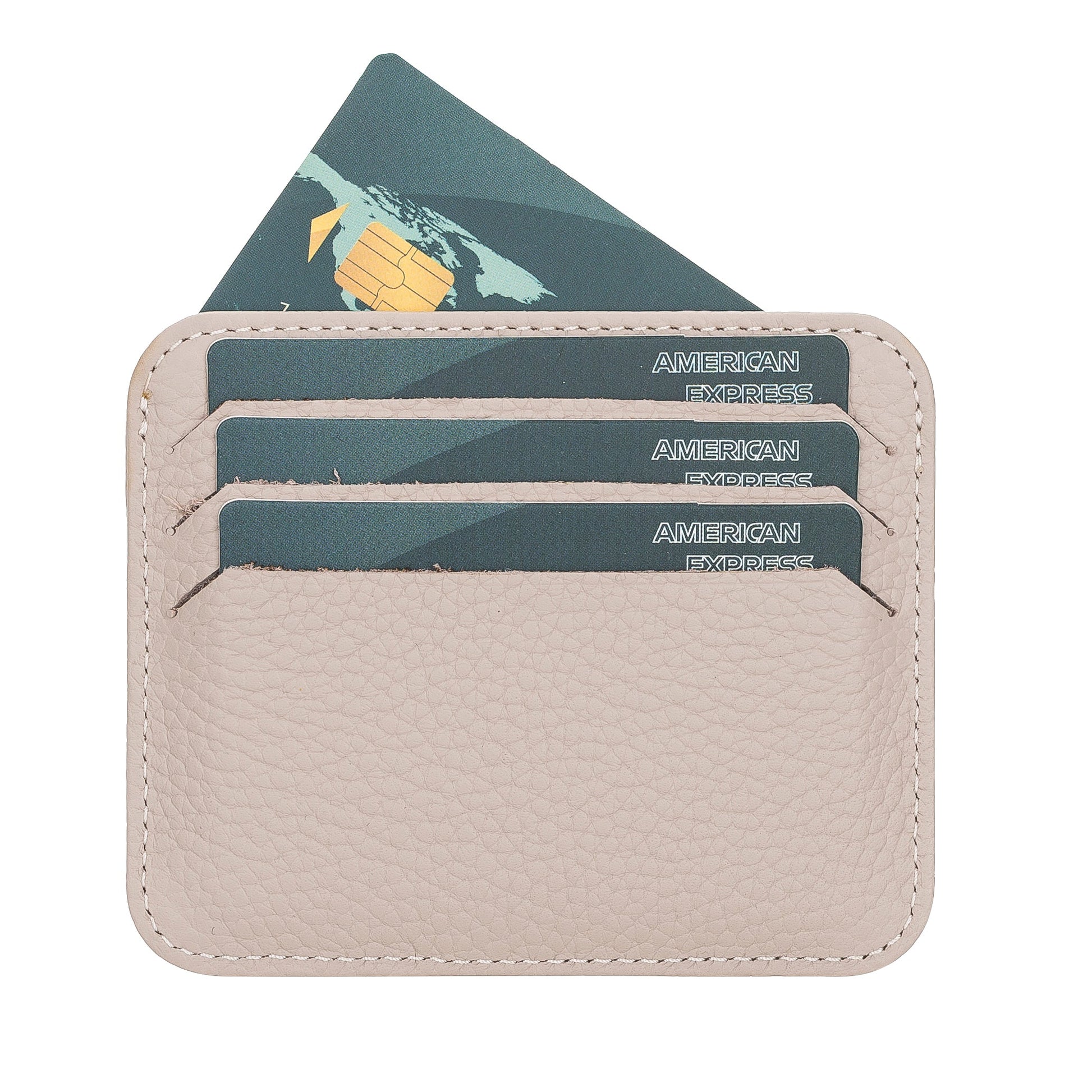 Leather Card Holder, Paper Money Section, 6 Card Compartments, Beige