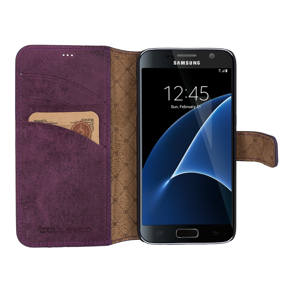 Samsung Galaxy S7 Compatible Leather Wallet Case WCID G7 Purple