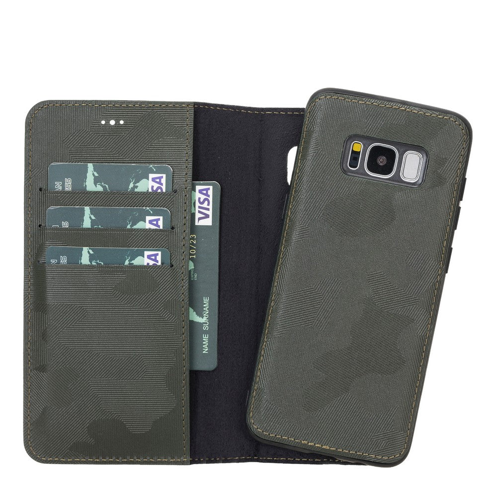 Samsung Galaxy S8 Compatible Leather Wallet Case Camouflage Green