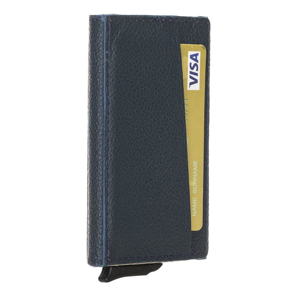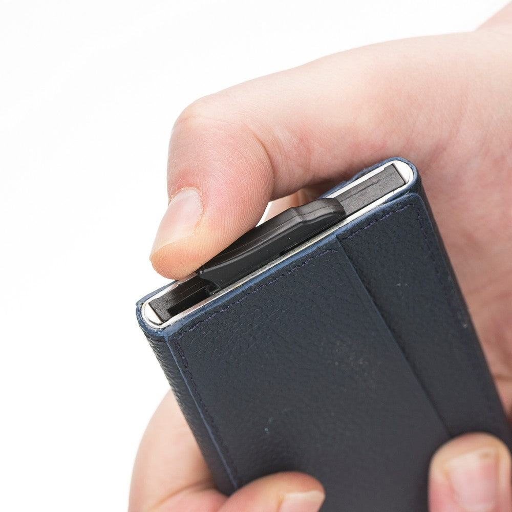 Torres Leather Card Holder with Mechanism Drop6 Navy Blue