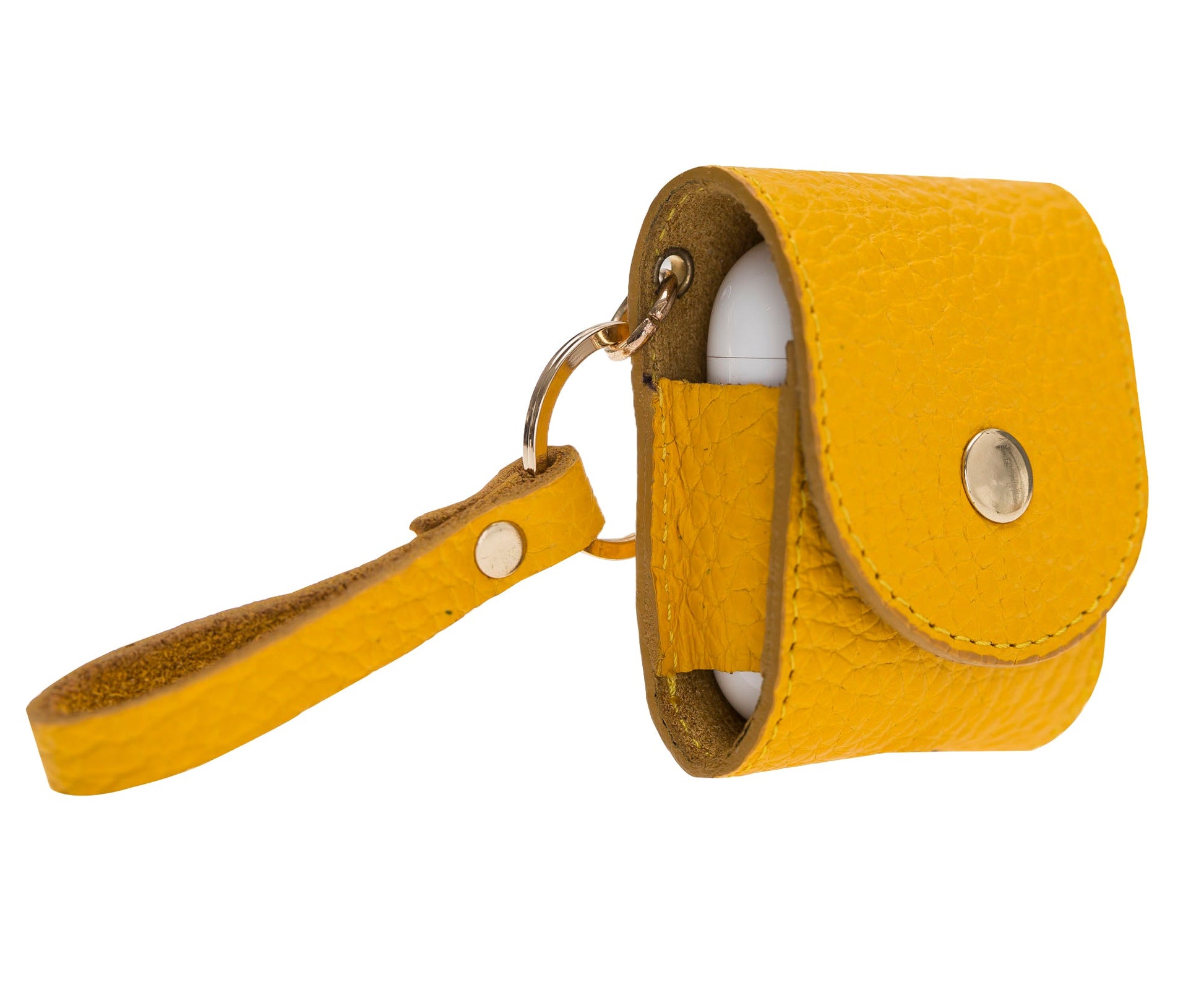 Apple AirPods 2.nesil Uyumlu Deri Kılıf Mai Snap FL12 Sarı