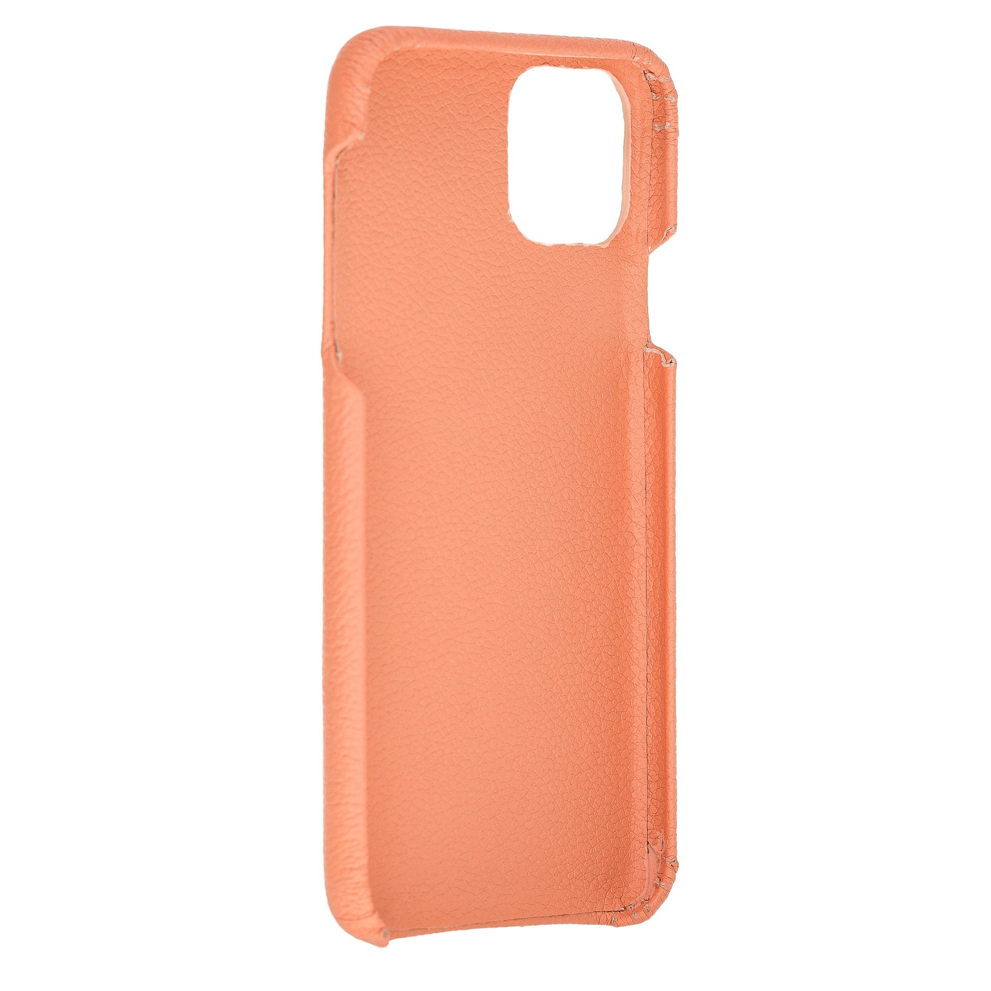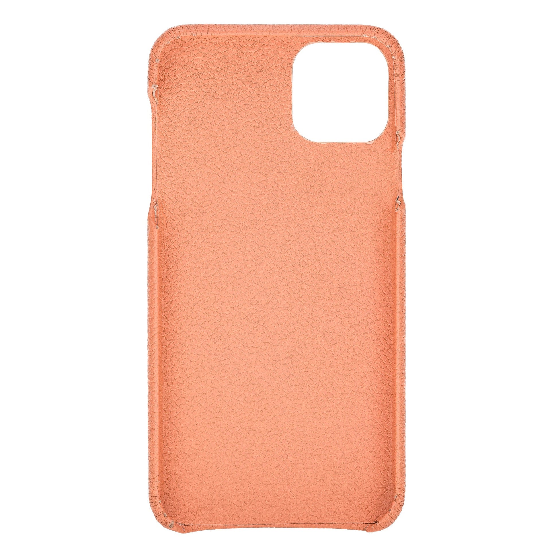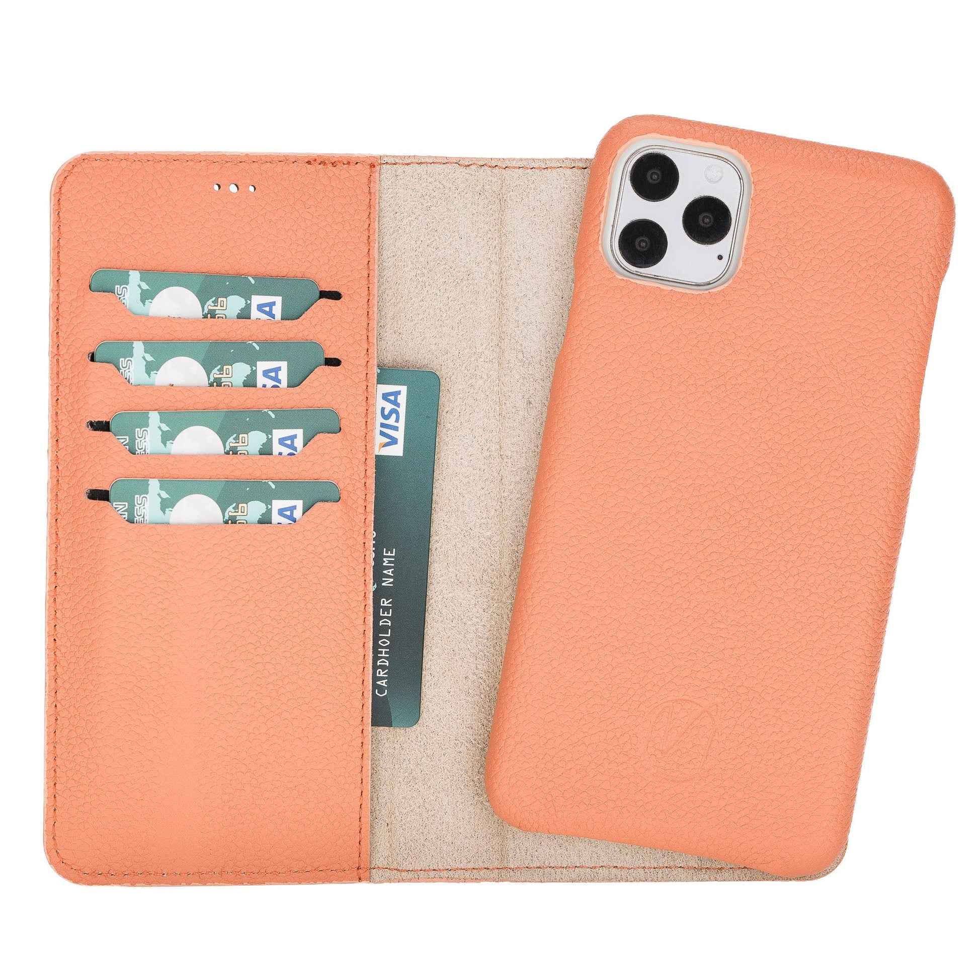 Apple iPhone 11 Pro Max Uyumlu, Gerçek Deri Kartlıklı Kılıf, Mercan