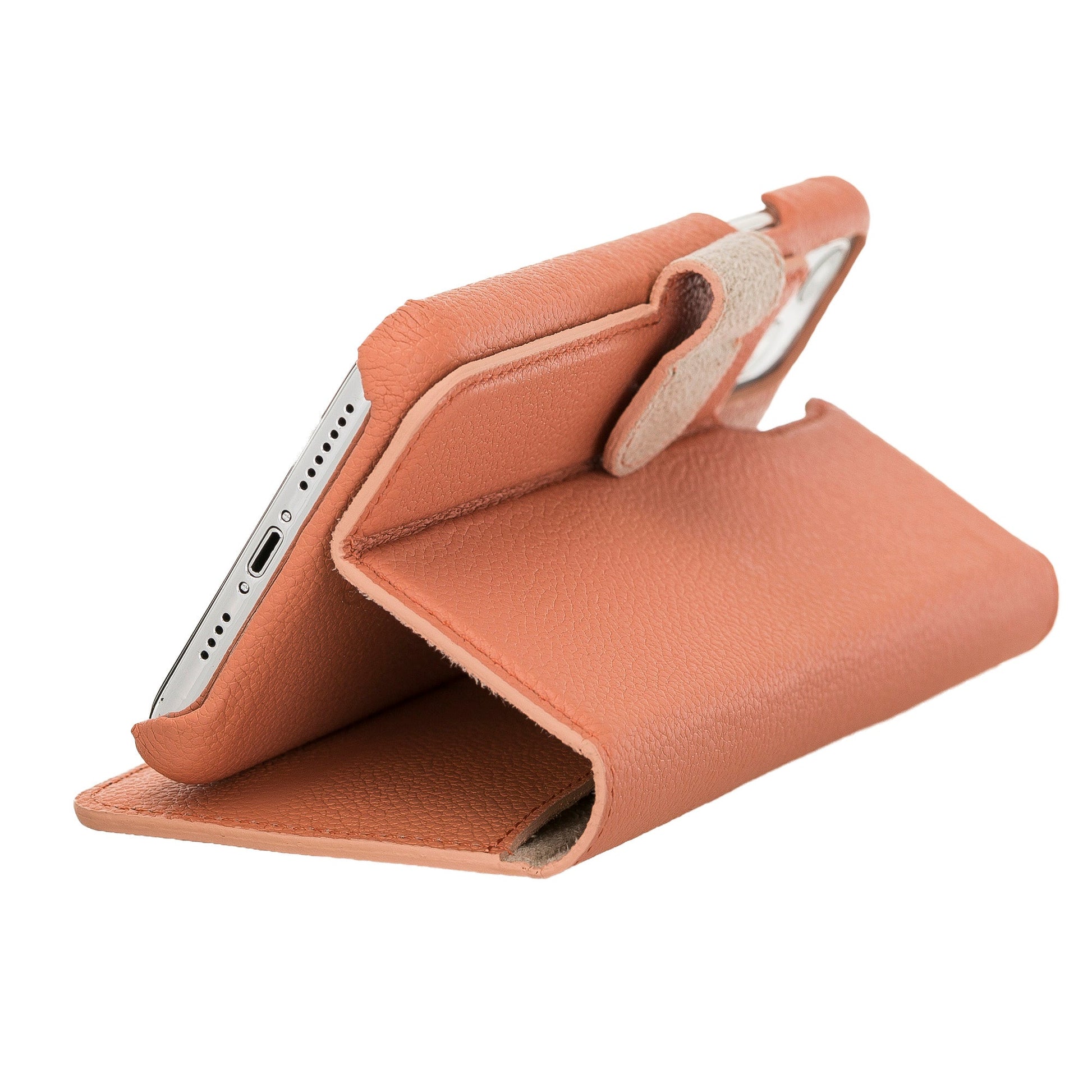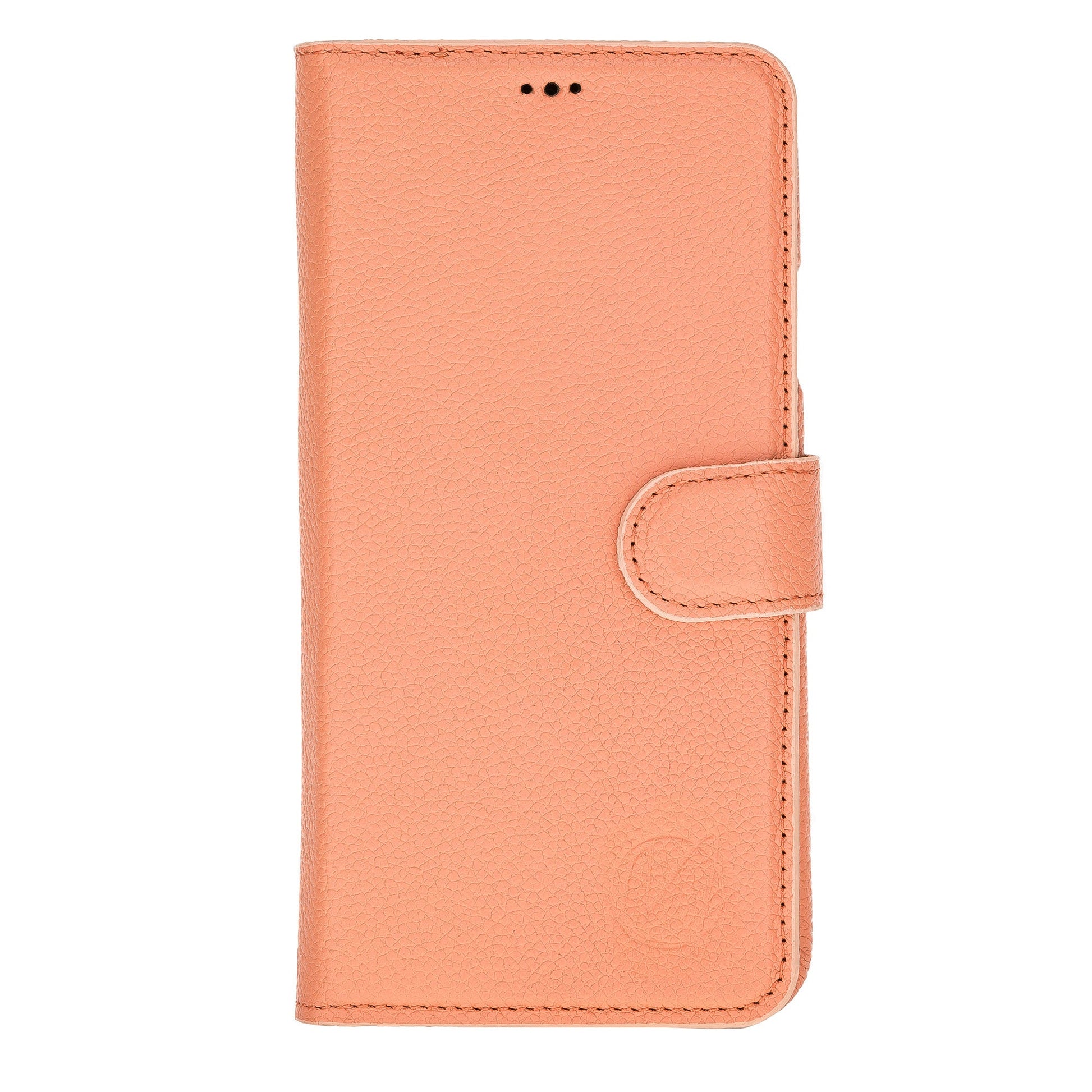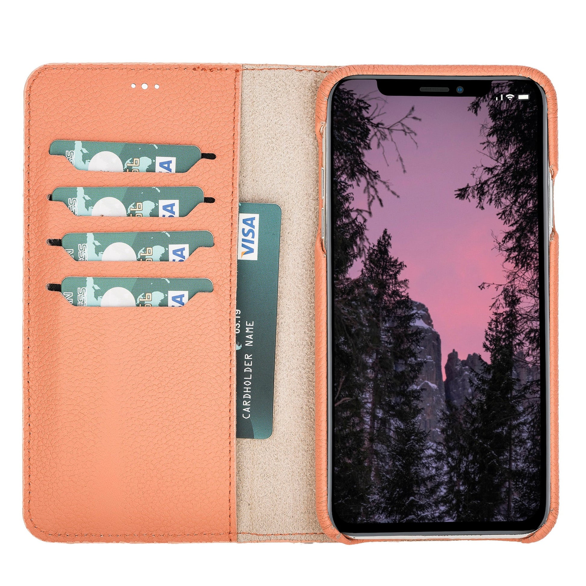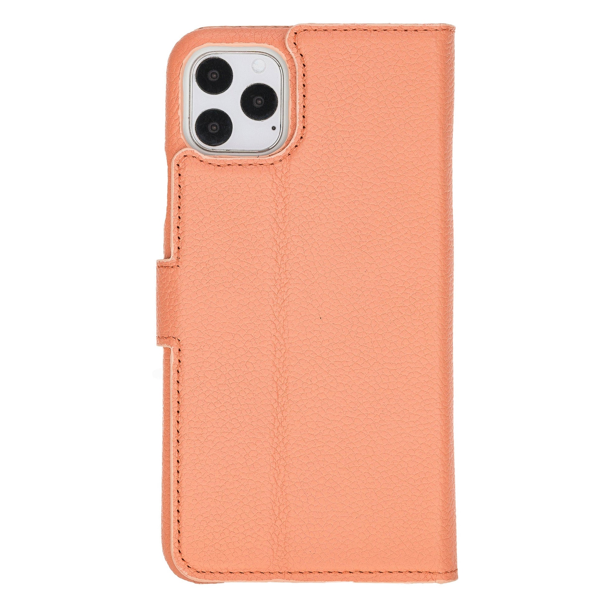 Apple iPhone 11 Pro Max Uyumlu, Gerçek Deri Kartlıklı Kılıf, Mercan