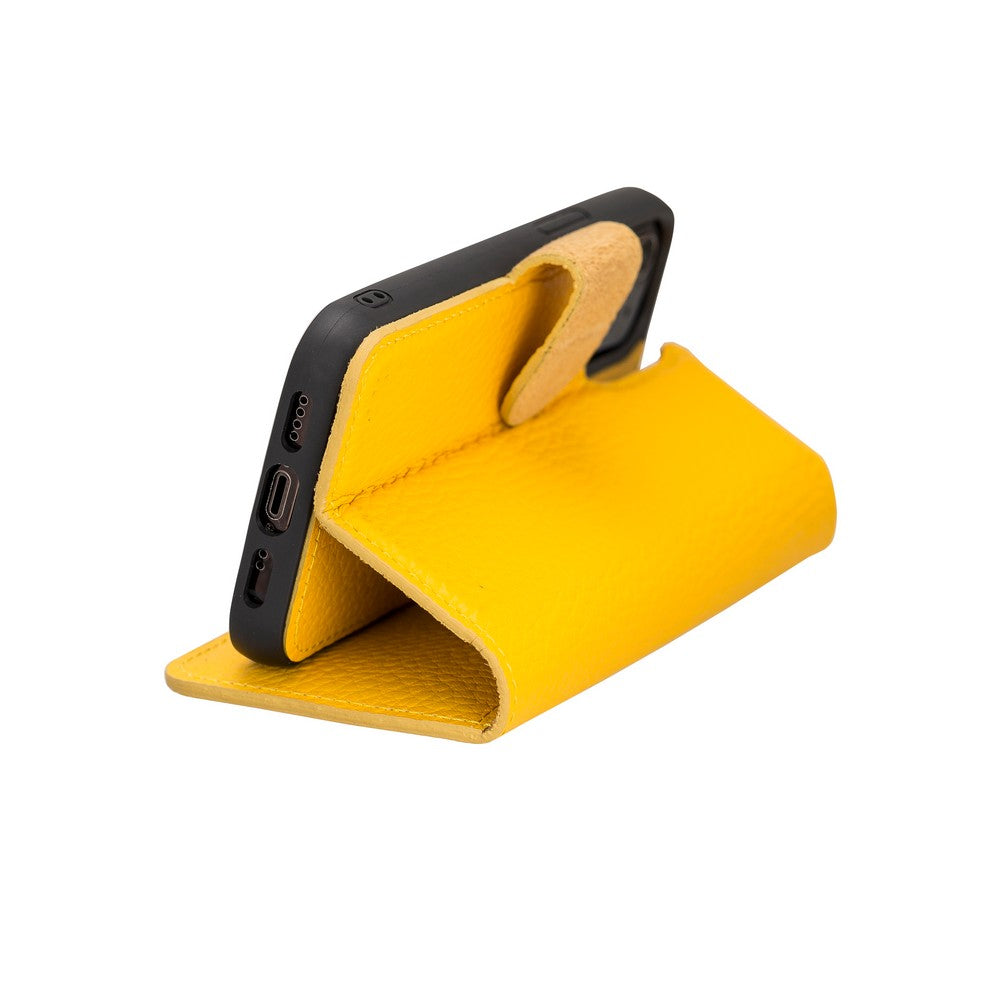 Apple iPhone 12 mini Uyumlu Deri Cüzdanlı Kılıf FL12 Sarı