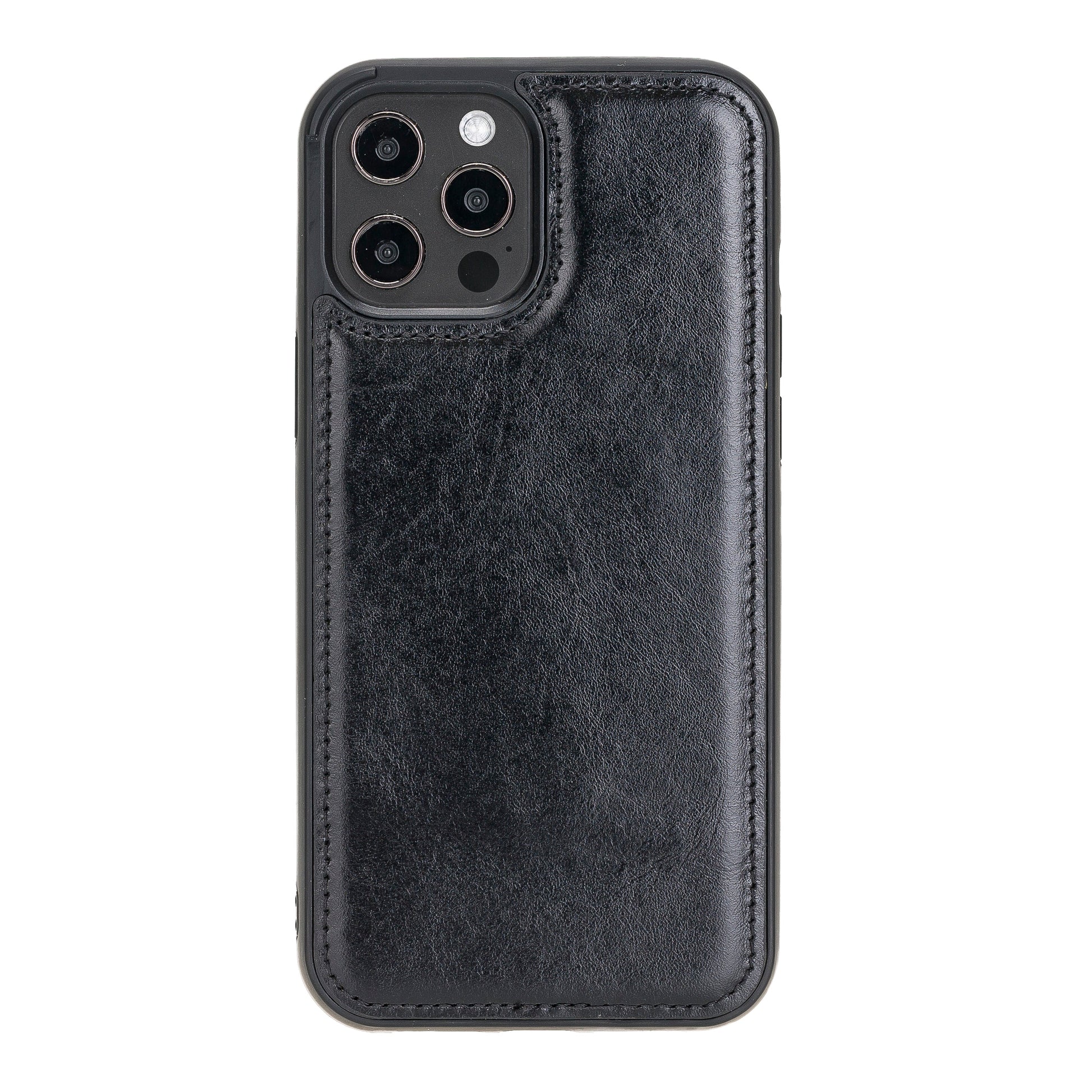 Apple iPhone 12 Pro Max Uyumlu Deri Arka Kapak RST1 Siyah