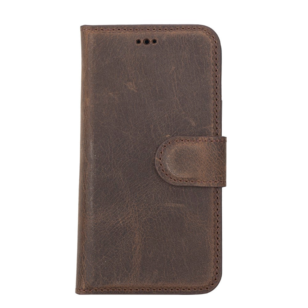 Apple iPhone 13 Mini Uyumlu Deri Cüzdanlı Kılıf G6 Kahverengi