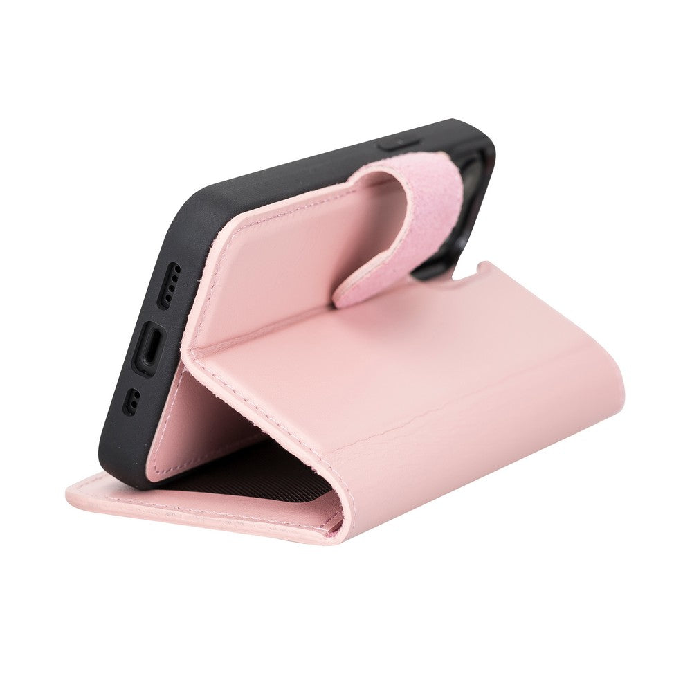 Apple iPhone 13 Mini Uyumlu Deri Cüzdanlı Kılıf NU2 Pembe