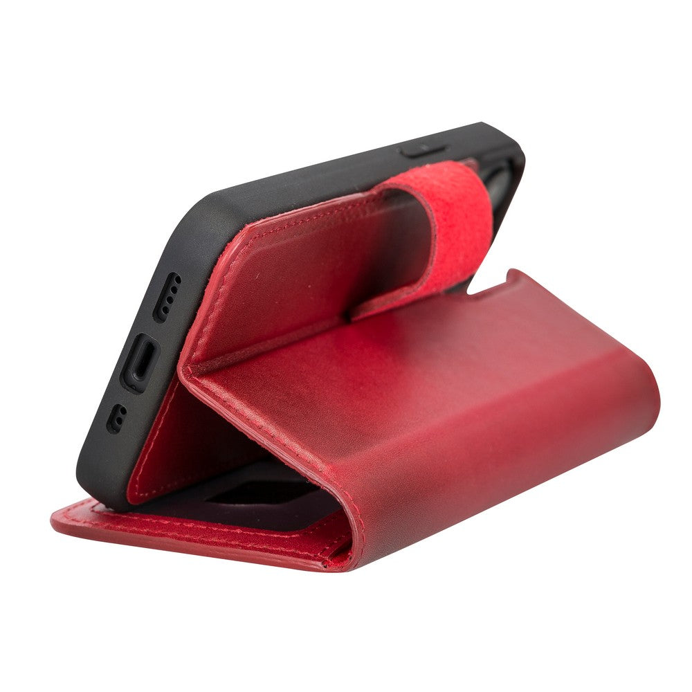 Apple iPhone 13 Mini Uyumlu Deri Cüzdanlı Kılıf V4EF Kırmızı