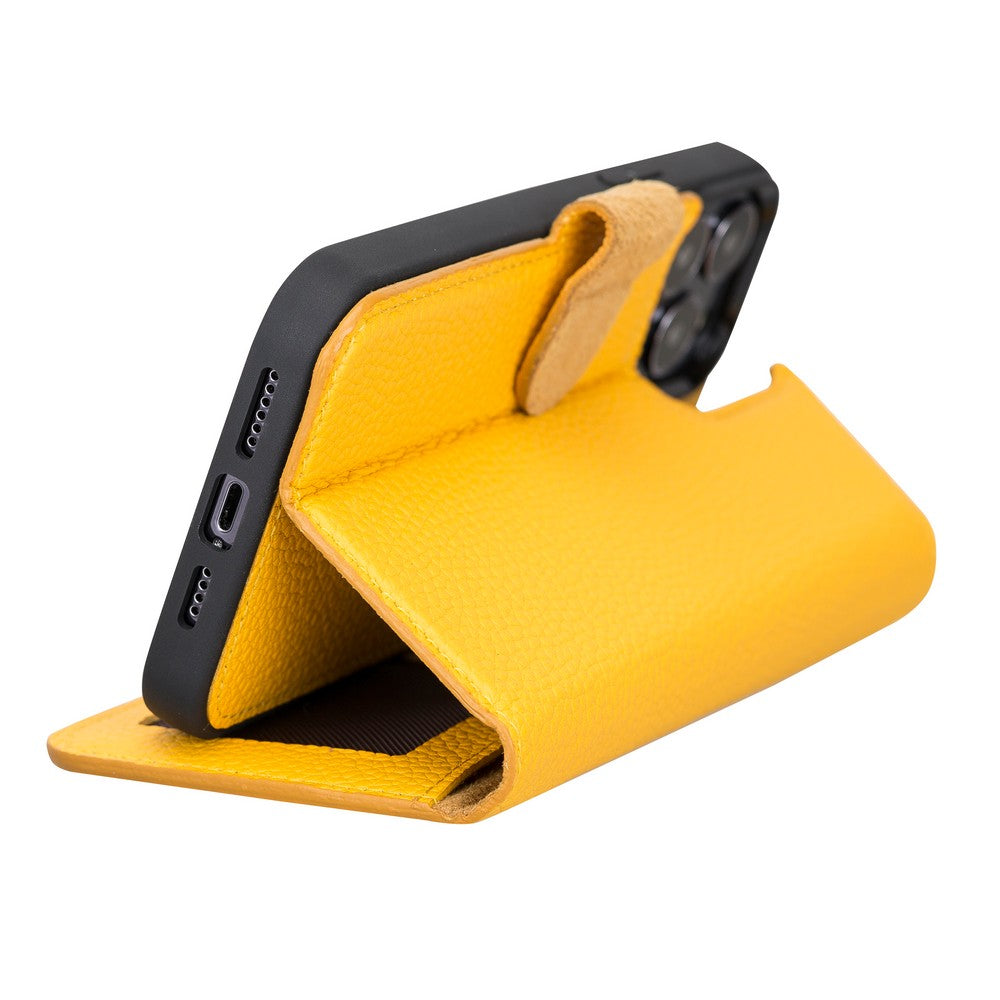 Apple iPhone 13 Pro Max Uyumlu Deri Cüzdanlı Kılıf FL12 Sarı