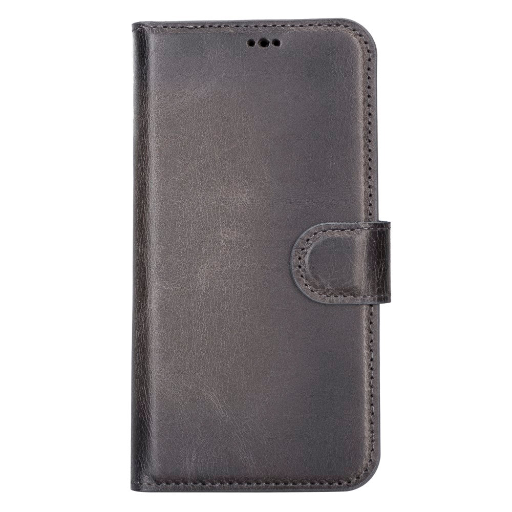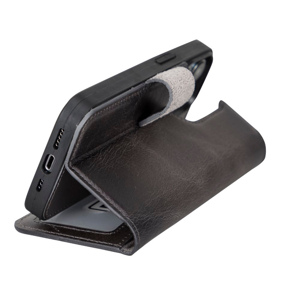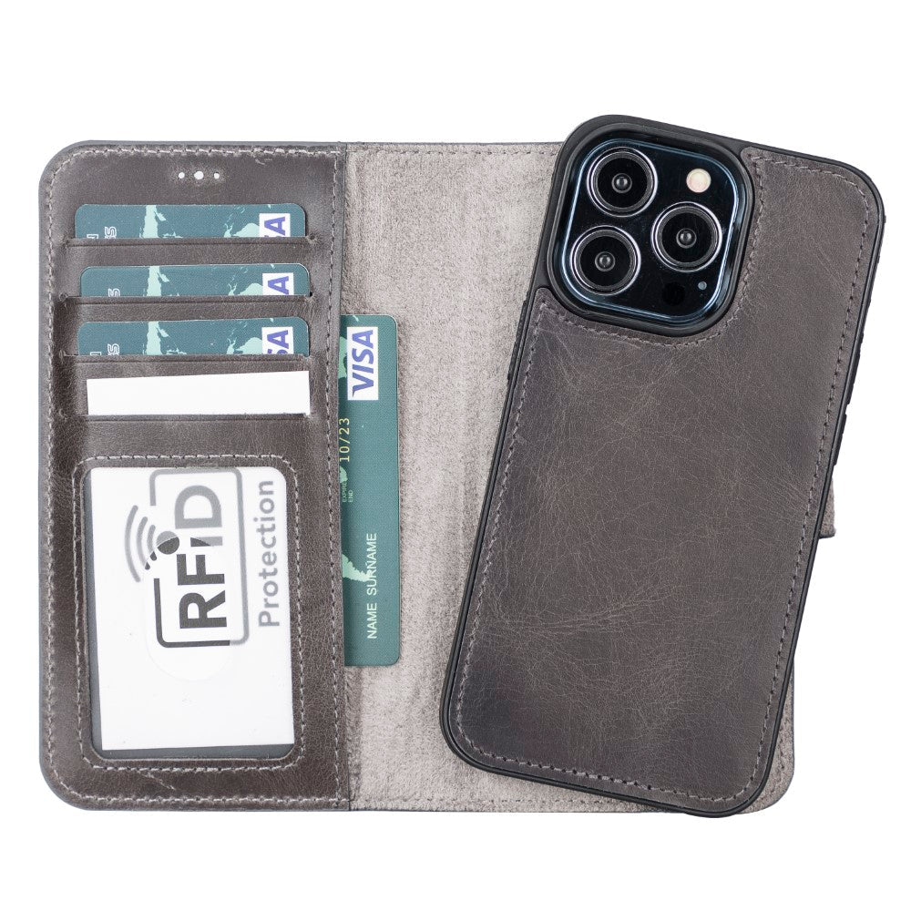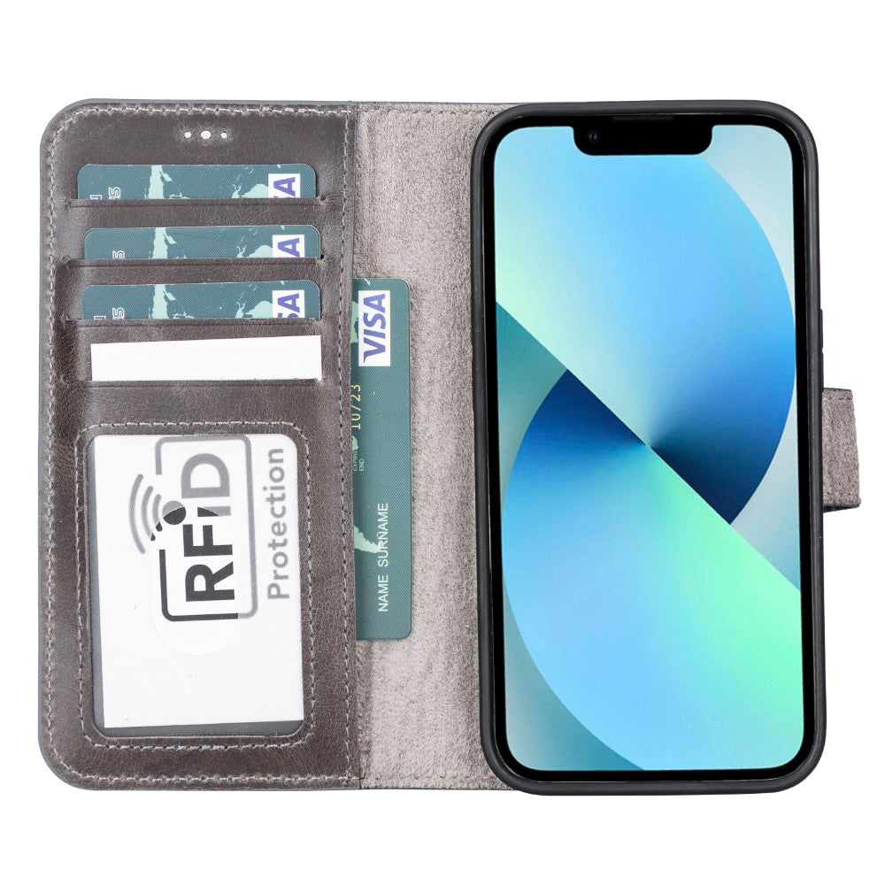 Apple iPhone 13 Uyumlu Deri Cüzdanlı Kılıf MWWN TN1 Gri