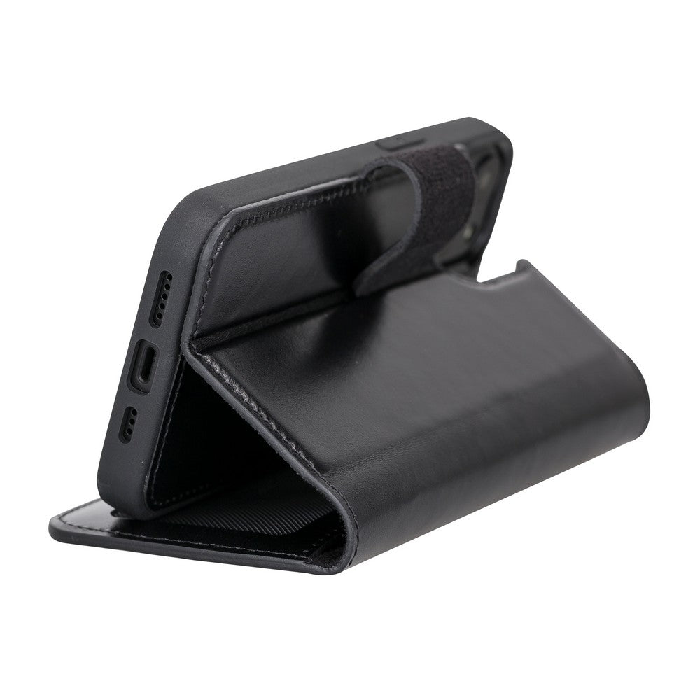 Apple iPhone 13 Uyumlu Deri Cüzdanlı Kılıf RST1 Siyah