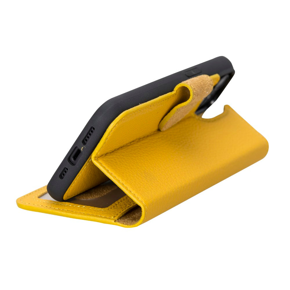 Apple iPhone 14 Uyumlu Deri Cüzdanlı Kılıf MWWN FL12 Sarı