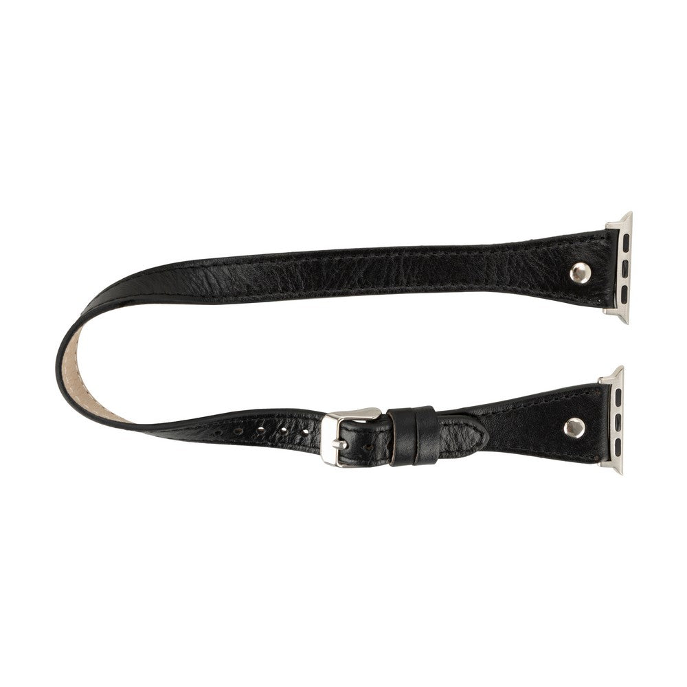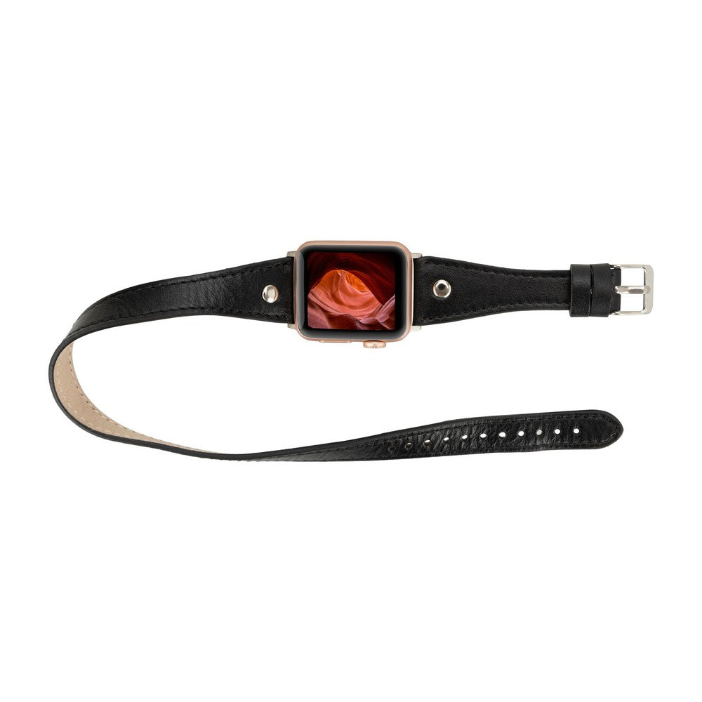 Apple Watch Uyumlu Deri Kordon, Çift Tur, Trok Detaylı, Siyah