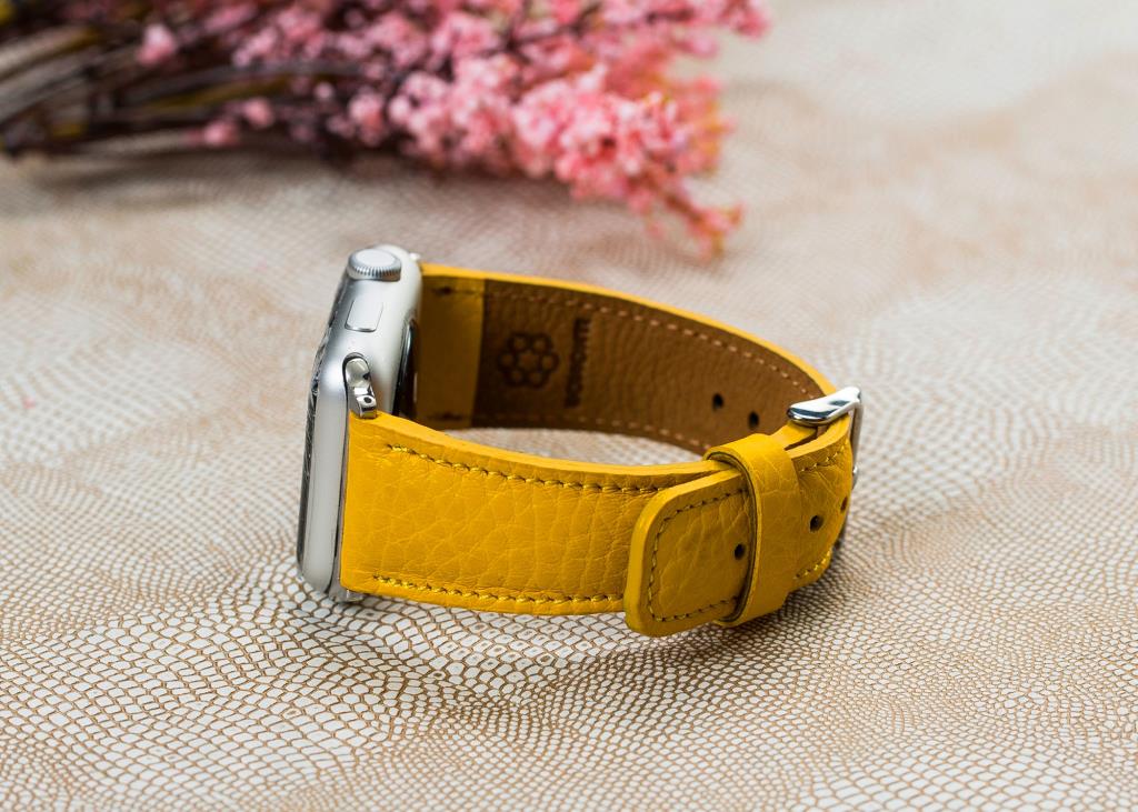 Apple Watch Uyumlu Deri Kordon FL12 Sarı