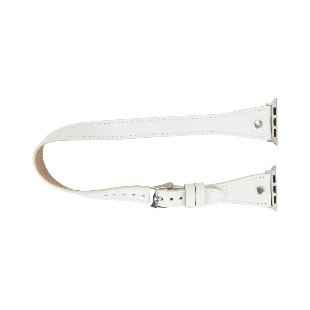 Apple Watch Uyumlu Deri Kordon, Çift Tur, Trok Detaylı, Beyaz
