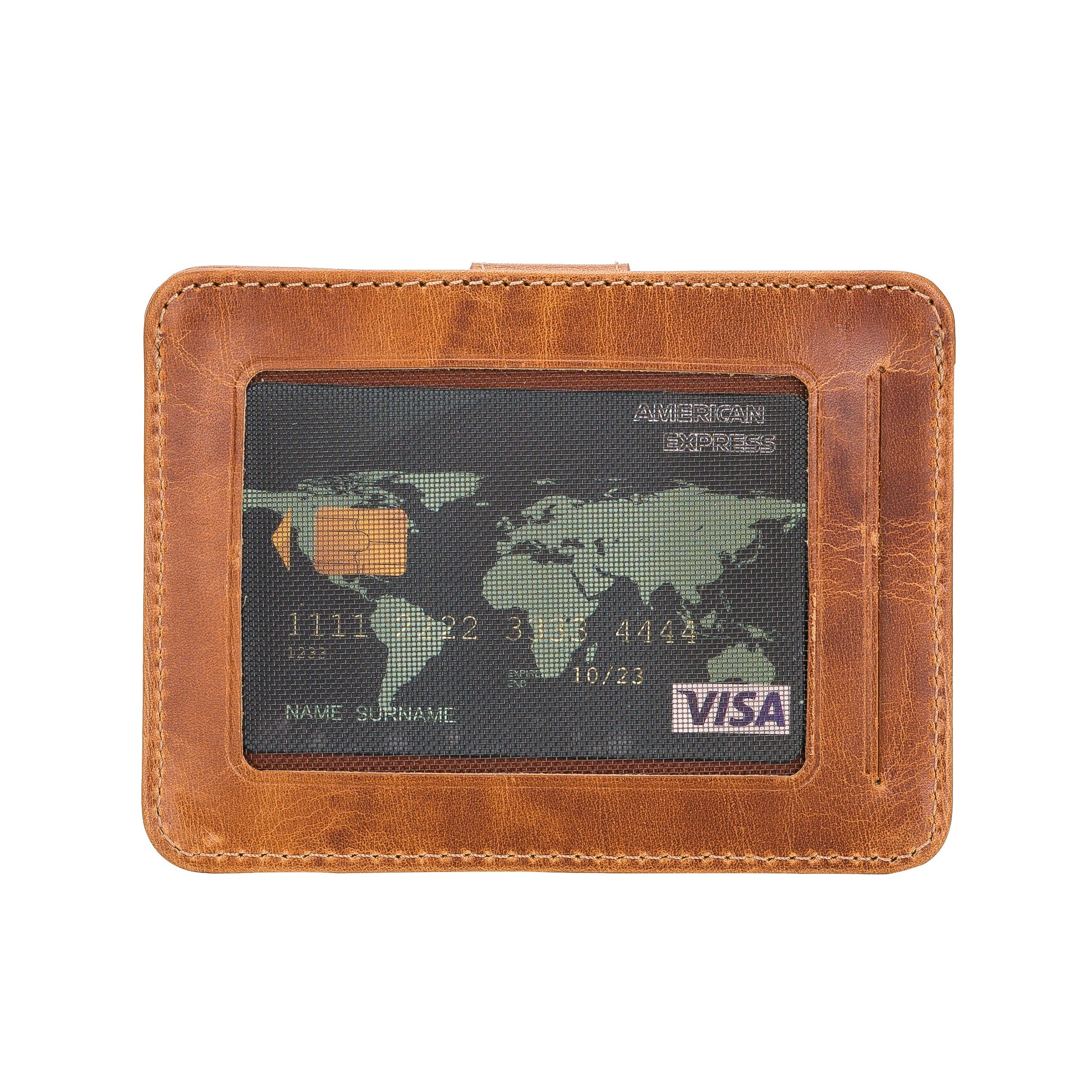 Deri Kartlık, 6 Adet Kart Bölmesi, 2 Adet Pencereli, Antik Taba