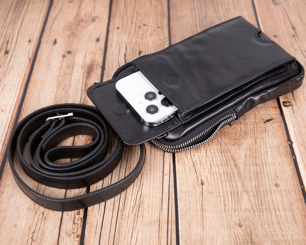 Nino Gerçek Deri Erkek Çapraz Çanta Parlak Siyah
