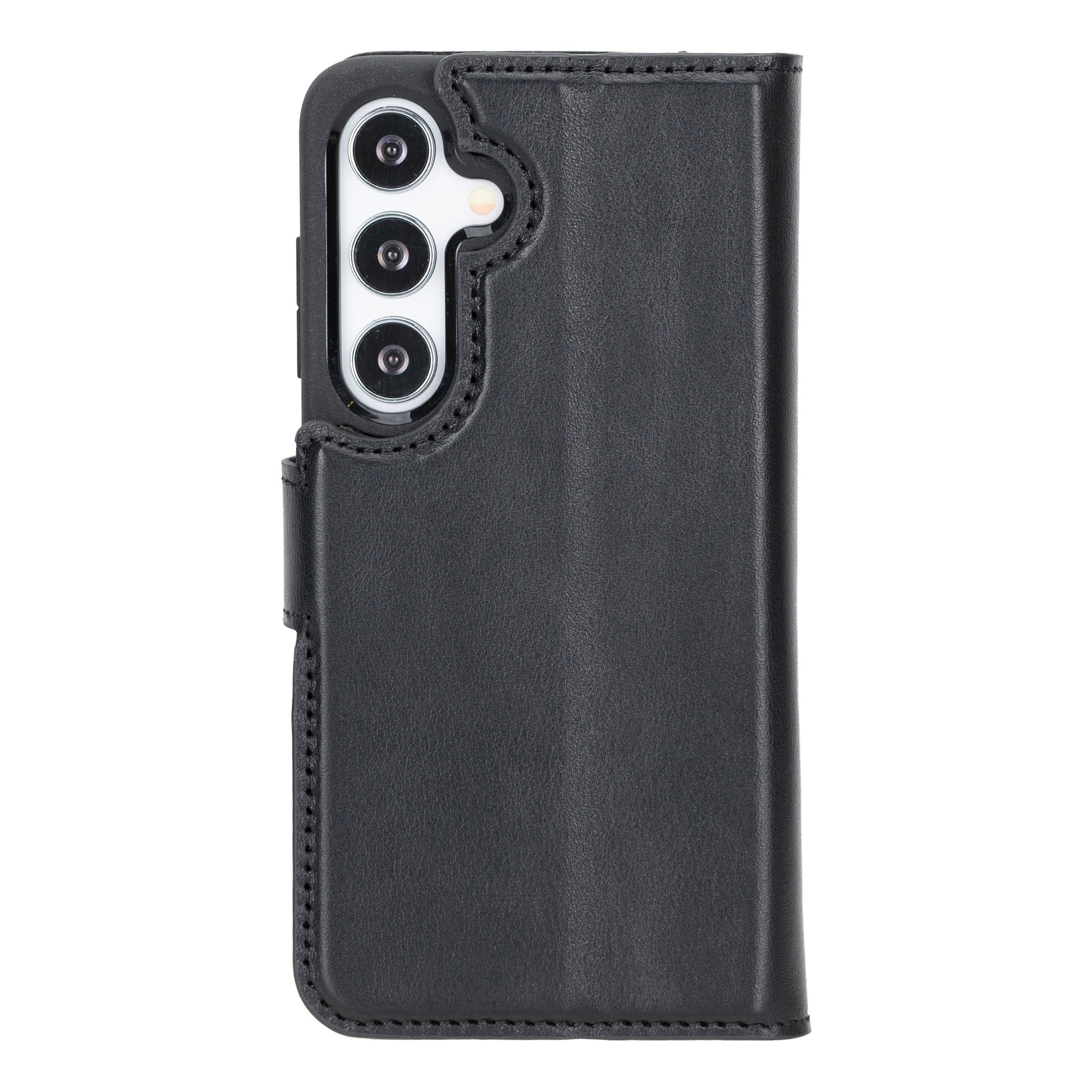 Samsung Galaxy S24 Uyumlu, Deri Cüzdanlı Kılıf, Parlak Siyah